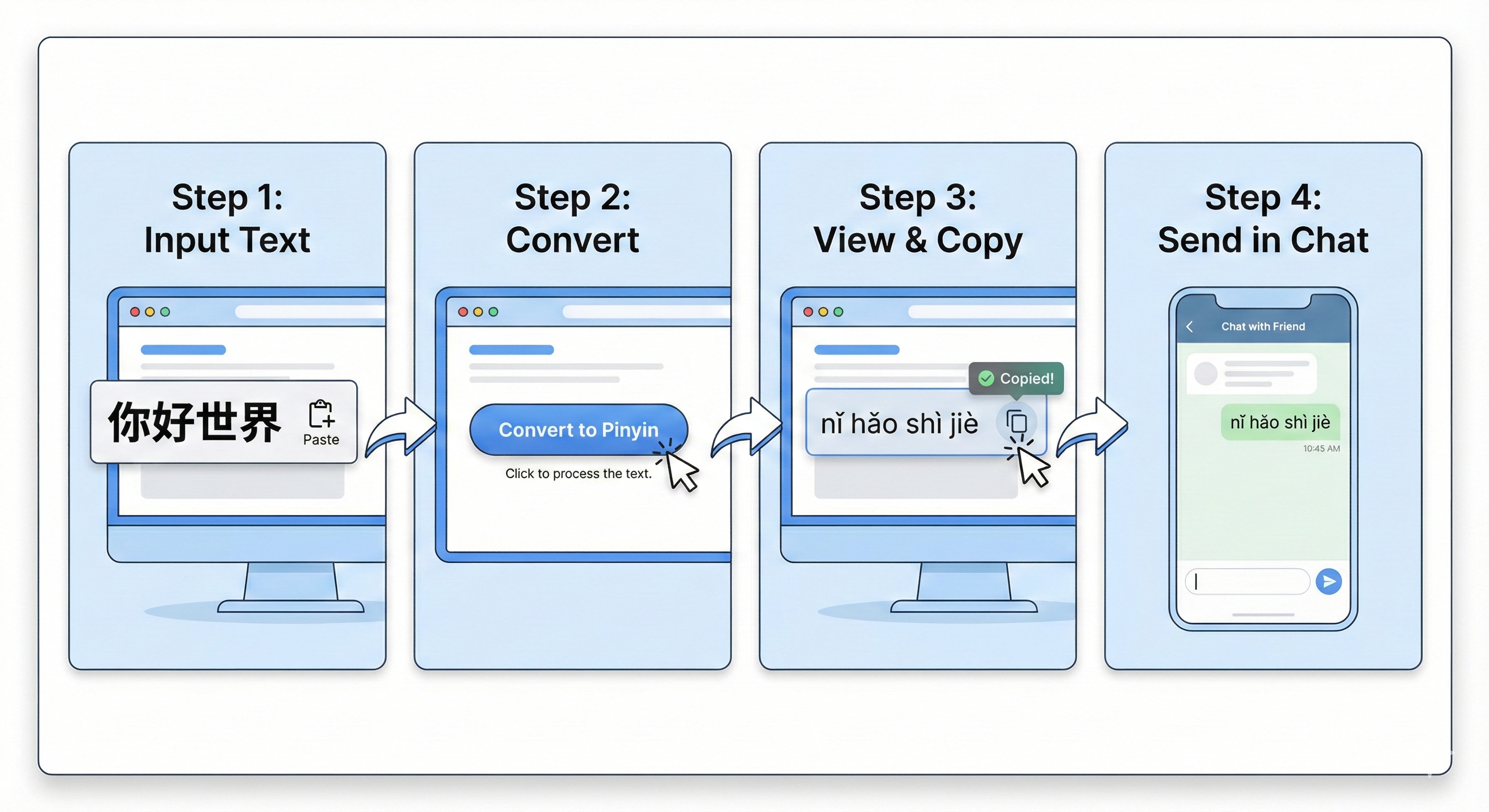 วันนี้ May Laoshi จึงขอนำเสนอเครื่องมือที่จะช่วยให้คุณพิมพ์ Pinyin ได้อย่างราบรื่น ไม่ว่าคุณจะใช้อุปกรณ์ใดก็ตาม เว็บไซต์ของเราได้จัดทำระบบ “Pinyin Input Converter” ที่ถูกออกแบบมาให้ใช้งานง่ายและเป็นมิตรกับผู้เรียนทุกระดับ เพียงแค่คุณพิมพ์ตัวอักษร จีนเข้าไป ระบบก็จะทำการแปลงเป็นอักษรจีนเป็นพินอิน ที่ถูกต้องให้คุณทันที พร้อมตัวเลือกให้คัดลอกใช้